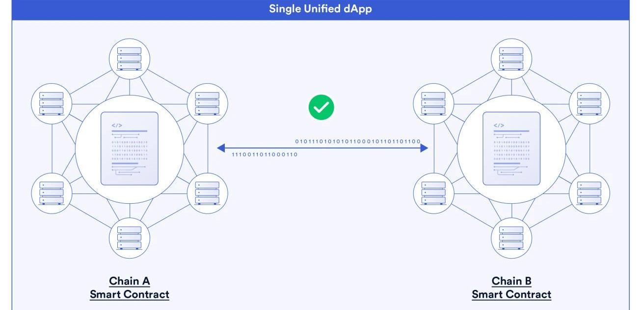 區塊鏈互操作性指區塊鏈相互通信的能力。區塊鏈互操作性的基礎是跨鏈消息傳輸協議,這類協議能讓區塊鏈面向其他區塊鏈讀寫數據。跨鏈消息傳輸協議可以支持創建跨鏈去中心化應用(dApp),一個dApp可以在不同區塊鏈上部署智能合約。跨鏈dApp與多鏈dApp的不同之處在于,多鏈dApp通常在多個區塊鏈上部署同樣的應用,但是每條鏈上部署的智能合約都是相互獨立的,與其他區塊鏈沒有關聯。