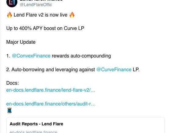 Lendflare是另一個協議。他們為借款人提供了友好的條款:固定利率,固定條款,以及不對選擇CurveLP頭寸進行清算。他們通過讓所有貸款發生在同類資產之間來管理這個問題,即用USDC從3pool中借款,所以價格波動的風險很小。他們的金庫大部分都被利用了。他們面臨著在熊市中推出的挑戰,所以我們很高興看到他們繼續快速發展,最近發布了他們的V2版。