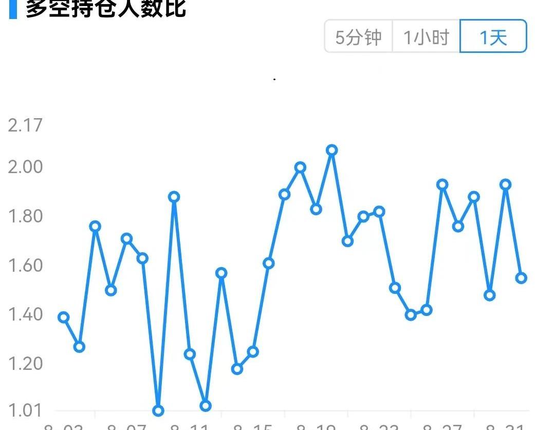 期貨多空比:1.7。多頭人數大于空頭,但費率為負值,表明小散戶做多,大戶做空。費率更能反應市場真實狀況,市場還是做空為主。多空比數據波動大,參考意義有所削弱。