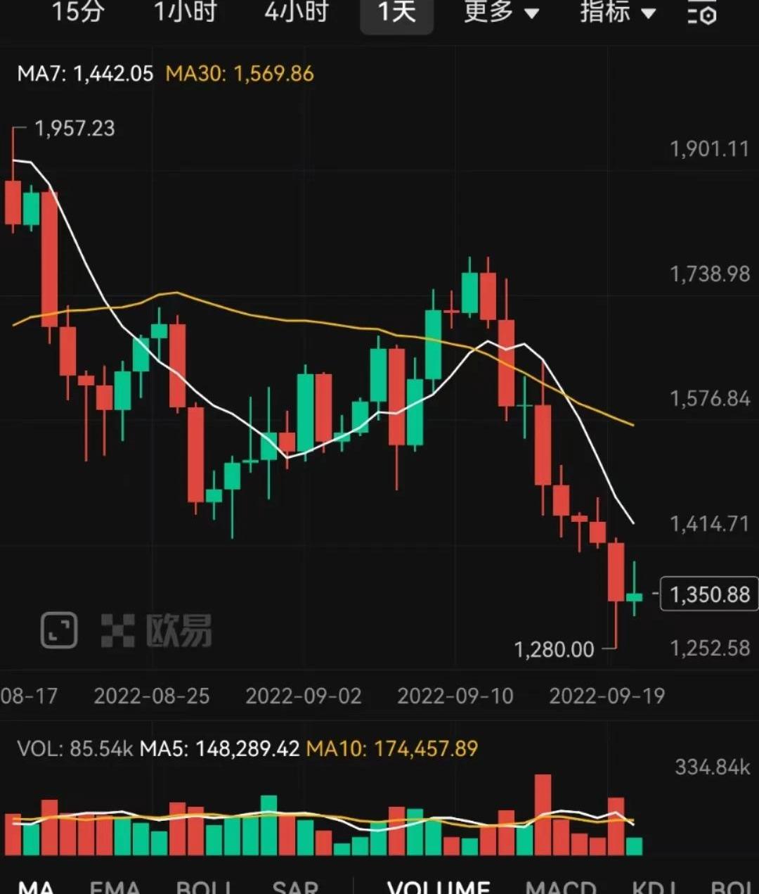 XRP/HKD-4.72%自以太坊開始進入合并以來,加密市場持續下行。據OKX行情顯示,昨日BTC逼近18000美元大關,最低跌至18235美元,創下近三個月最低水平;ETH短時跌破1300美元,最低跌至1280美元,創下近兩個月最低價。其他山寨幣也都有不同幅度的跟跌表現。截止發稿時,BTC和ETH報價分別為19209美元和1350美元。