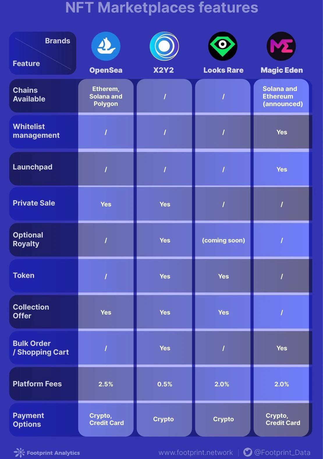 X2Y2TradingFees賣方支付這些費用。正如我們之前看到的,這些費用是可變的,每個平臺都有特定的管理。頂級NFT交易市場概況
