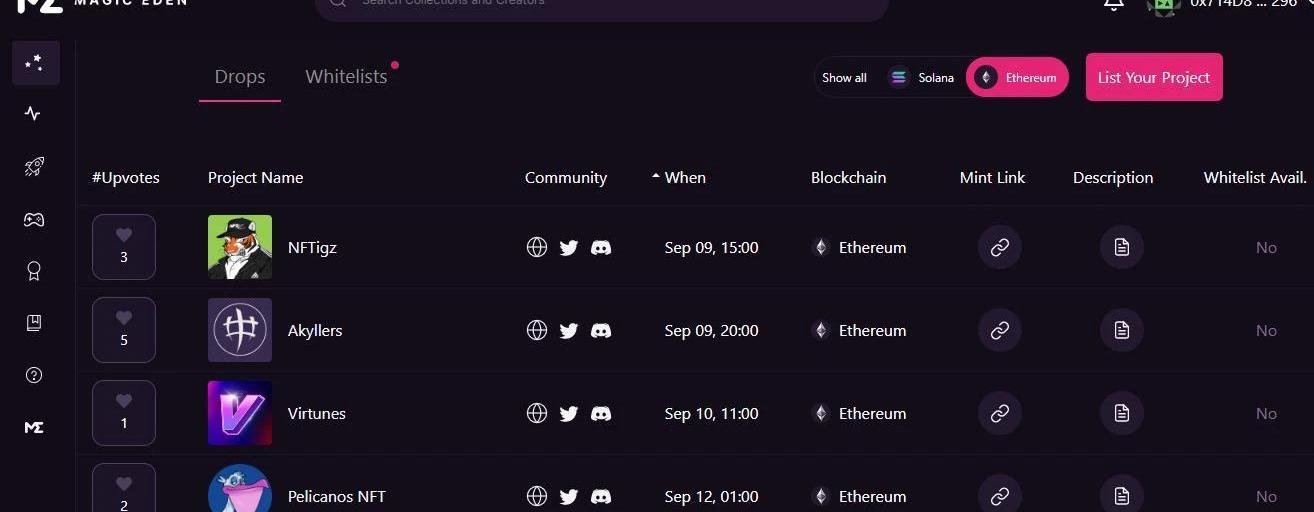 Launchpad另一個只有在MagicEden上才能找到的獨特功能是白名單管理。MagicEden支持即將推出的精選列表,并為其白名單過程提供軟件管理。