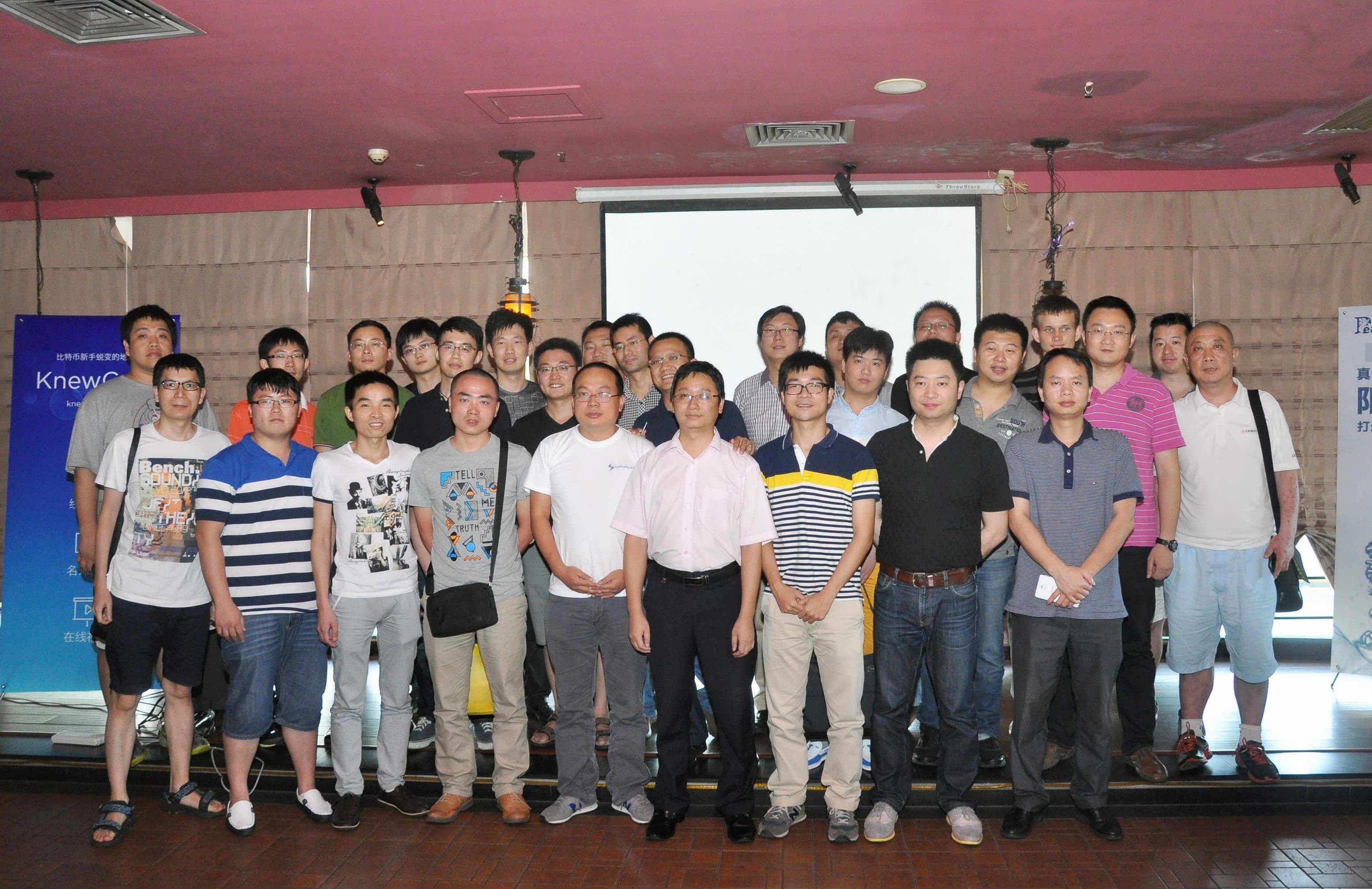活動與會者合照,Vitalik在右后的角落里,圖片源自網絡Vitalik碰到這樣的冷遇并不意外,14年的中國加密市場正經歷著急劇變化,沒人有空搭理這個不知從哪里冒出來的青年。這一年年初,好比特幣創始人吳剛和比特大陸的吳忌寒打了一個10枚比特幣的對賭:年底比特幣算力能不能突破1000P?吳忌寒認為不能,吳剛認為可以。當時,全球比特幣算力剛剛突破P級,要想破千并不現實。但經過一整年的價格飛漲,圈內的所有人都信心爆棚,資金人才紛紛跑步進場,礦機生意持續升溫,似乎沒有任何事情能阻攔比特幣的腳步。5月,寶二爺郭宏才組織的比特幣礦機大會在深圳召開,張楠賡、李林、徐明星、謝堅等圈內大佬悉數到場,大會氣氛非常熱鬧,整個市場一片生機勃勃的景象。此時的中國加密市場,主流聲音是比特幣挖礦和交易,對初來乍到的以太坊完全沒有認知,很多人甚至懷疑以太坊是一個杭州人搞的項目,Vitalik則是他們雇來的演員。