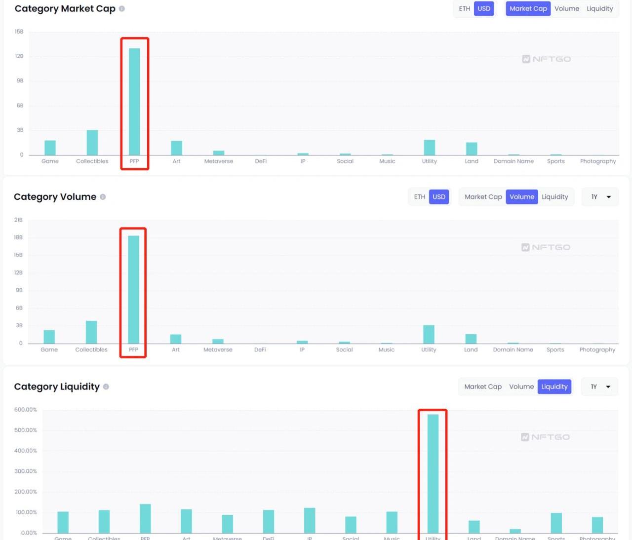 毫無疑問,從體量和交易額來看,目前仍是PFPNFT的天下,其總市值高達13BUSD,交易額高達18BUSD,但從流動性來看,流動性最好的是UtilityNFT。
