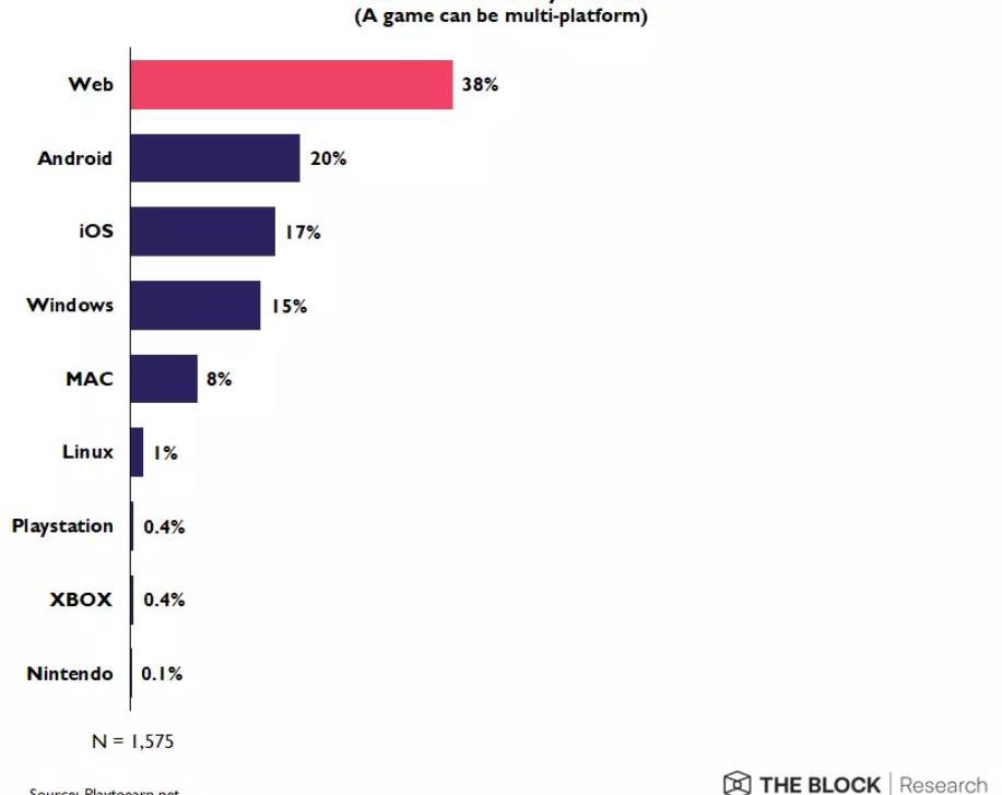 38%的GameFi項目選擇Web瀏覽器來托管他們的游戲,其次是手機和PC客戶端。