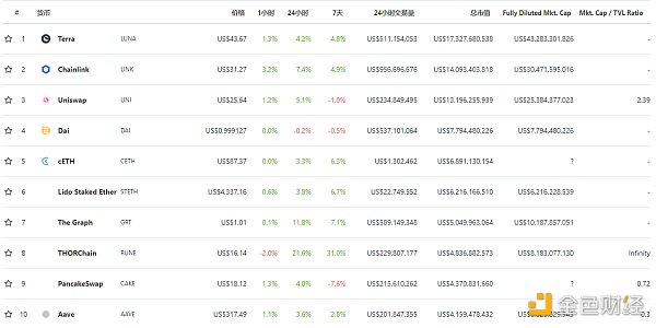DeFi項目鎖定資產前十排名及鎖倉量,數據來源:Debank