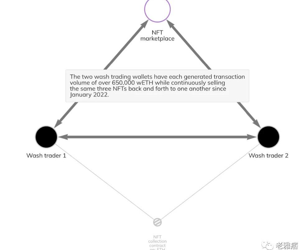 它顯示了元宇宙房地產類似于token工具的趨勢。人們目前購買它的目的是為了以更高的價格出售它。我很想在這里看到的一件事是,幾天內每個世界的房地產地塊達到歷史最高水平的平均時間,以及從那以后持續了多長時間。我推測目前房地產資產的ATH是在推出后的幾天內,而且它們不會隨著時間的推移而保值。我可以訪問一些metaverse數據集,所以我們稍后會深入研究。報告的其余部分涵蓋了有關UST脫鉤的信息。我暫時避免討論這個問題,但會對我見過的最活躍的washtrader進行總結。該報告提到了一個根據交易量獎勵token的“平臺”。我推測這是looksrare。他們在今年早些時候曾推出過一個token。Washtrading通常是指人們在自己之間進行交易,以制造交易量的錯覺。在加密貨幣的情況下,一個人可以啟動數千個錢包來申請空投。這些washtrader明目張膽得令人印象深刻。他們做了大約65萬個ETH的交易量,彼此之間賣出和買入3個相同的NFT。他們從未與任何其他賣家或買家有過互動。有關錢包設法花費了1.14億美元的汽油費,以獲得價值約1.855億美元的token。
