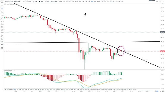 短期4小時,目前價格承壓近期下降趨勢線,一旦放量突破,將有望構筑階段雙底,短線將有望繼續上行,強壓位于上方周線壓制40美金附近。