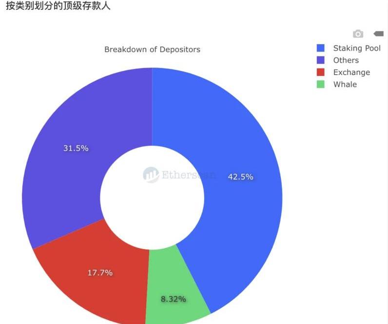 根據etherscan數據顯示,目前參與以太坊2.0質押的節點中,質押池占比為42.5%,交易所占比為17.7%,巨鯨占比8.32%,其他類型占比為31.5%。這其中包含了Staking服務商和個體節點,質押池和交易所可以算做Staking服務商,是其中當之無愧的中堅力量。