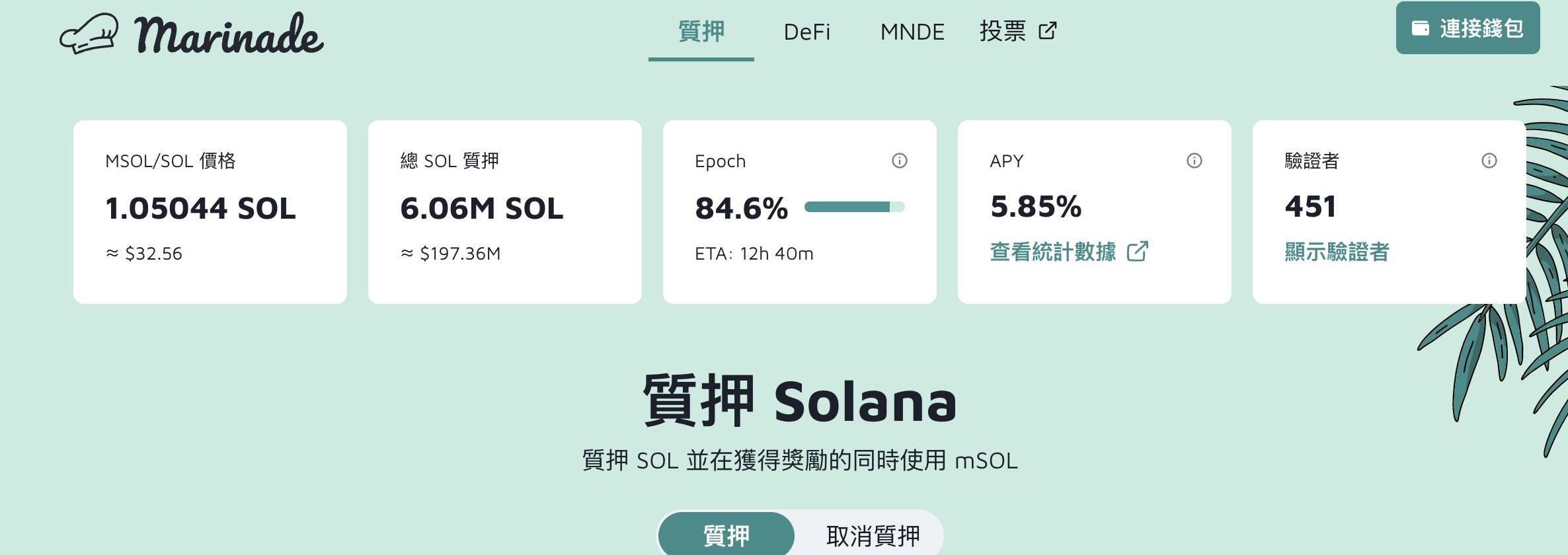 Lido官網沒有為質押用戶提供額外的退出渠道,但是通過流動性挖礦的方式,激勵了stETH的流動性,并通過規模和品牌效應讓stETH在整個DeFi生態中廣泛應用。截至6月15日下午,在市場下跌已經引發連環清算的情況下,以太坊上主要的借貸協議AaveV2中,stETH的存款約為13.3億美元,占以太坊上AaveV2總存款的21.5%;Curve中ETH/stETH的流動性共6.09億美元,其中stETH占比80.38%,ETH占比19.62%。在Celsius引發的恐慌之下,Curve池流動性已經偏離平衡,但依然有超過1億美元的ETH。在原來Terra鏈上的Anchor中,由Lido質押產生的bETH也可以作為抵押品。本次stETH的脫錨只是單純的流動性問題,只要質押ETH的需求還在,stETH就有購買需求。若出現較大折扣,對于ETH的長期持有者而言則是買入機會。Solana:mSOL