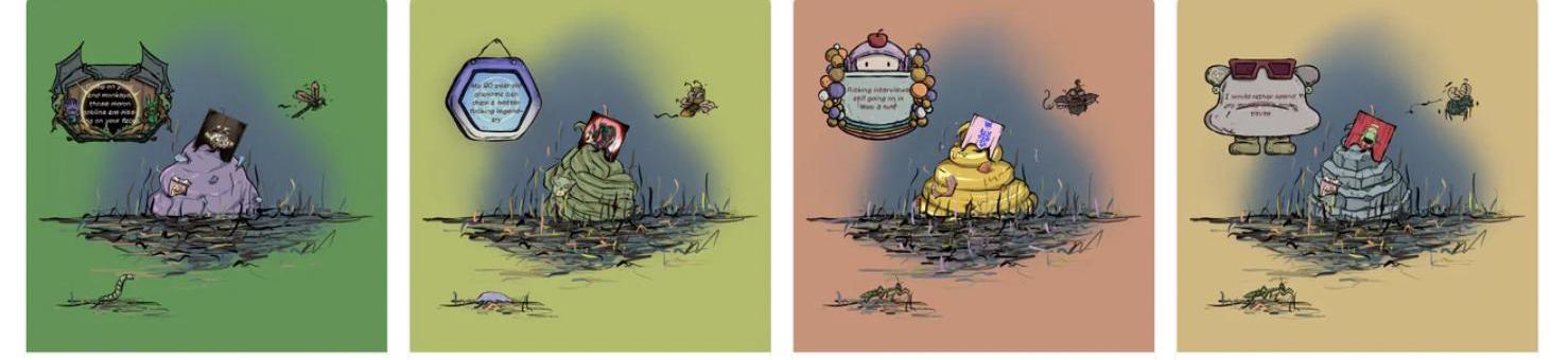 熊市到了現在,市場突然涌現出一批以「丑、惡、怪」為特點的NFT,這樣一股「泥石流」的沖擊,不禁讓人們懷疑NFT的價值到底與何種共識對應,也許是因為人們對于目前市場的不滿,大部分NFT都處于虧損的狀態,這時poopNFT對一些NFT的諷刺正好引起了人們共鳴,存在著一部分情緒上的共識。隨著ShitDeployer不停地升級玩法,屠龍少年是否也會成為惡龍呢?讓我們持續觀察。