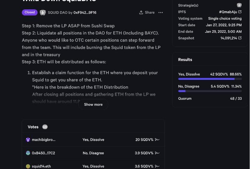 2021年10月又是一個「匿名團隊」建立了OHM/NounsDAO的仿制品SquidDAO。MachiBigBrother.eth時其早起持有人之一,而到了2022年1月,該項目在Machi的授意下關停。