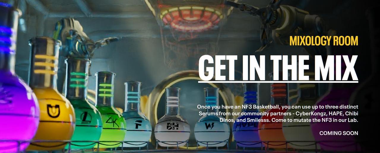 除了自建社區,CurryBrand也準備與其他Web3社區進行互動,比如,在此次的BasketballHeadz中,粉絲通過參與關于庫里的Web3活動來獲得NF3籃球,之后再使用來自社區合作伙伴的「血清」NFT來進行合成BasketballHeadz,這樣不僅升級了玩法,也聯合了不同Web3社區的力量。