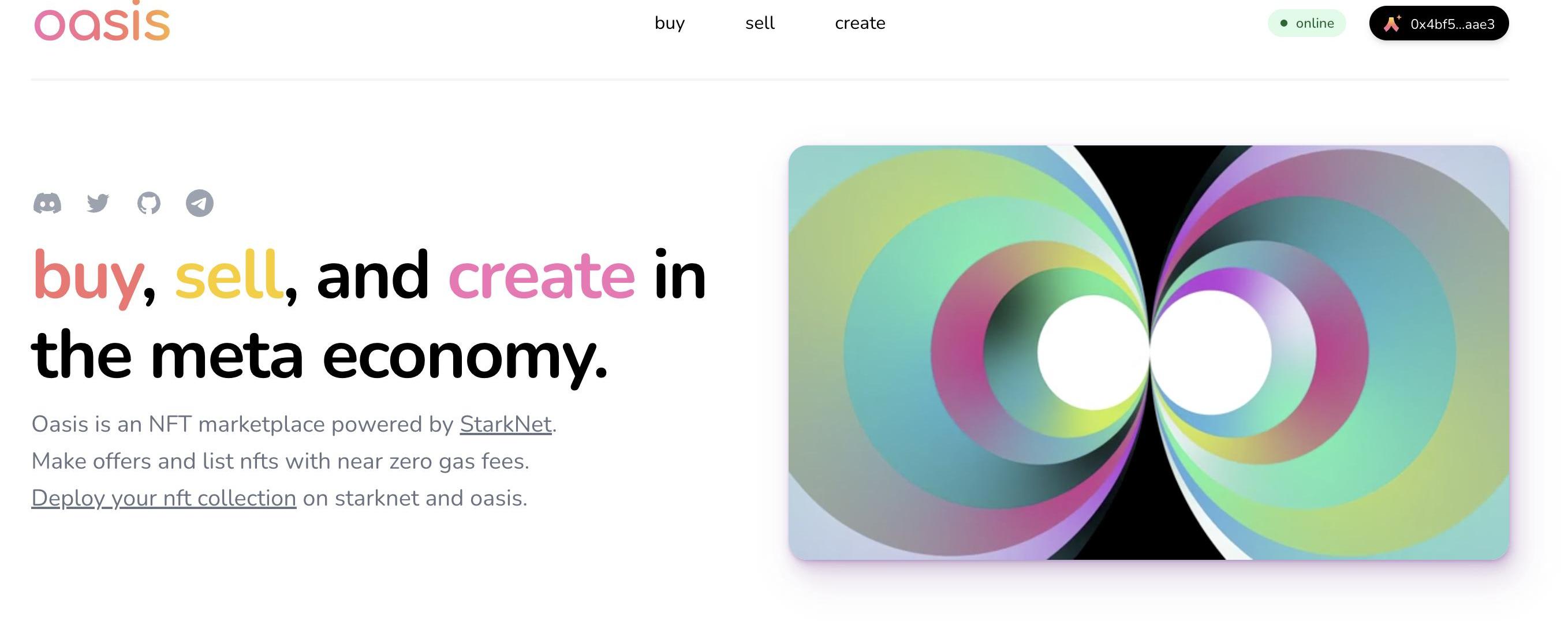 NFT市場MintSquareMintSquare當前在StarkNetGoerli測試網上支持NFT鑄造,并且已經集成了NFT制作和可組合系統briq的NFT系列。OasisOasis是一個由StarkNet提供支持的NFT市場,已在StarkNet測試網上運行,功能相對完善,當前支持NFT鑄造、購買、出售和報價功能。