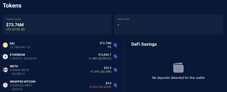 最后,查看其中一個DAI巨鯨錢包,確認以太坊巨鯨主要集中活動于DeFi,即使活動并不總是那么活躍。?