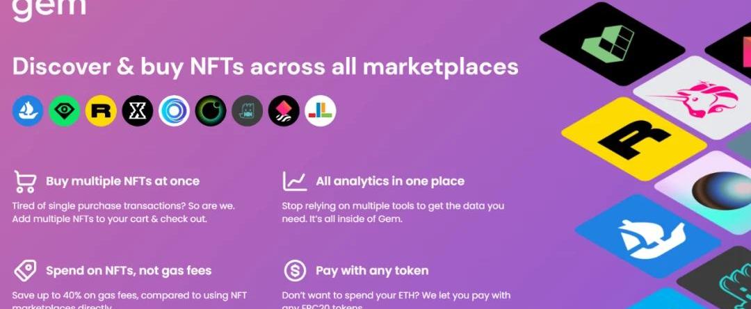 Gem是一個NFT領域的聚合器,是基于以太坊的,目前可以為用戶提供多個NFT市場平臺中的大量TVL,以及地板價情況的NFT聚合平臺。Gem聚合了NFTX、NFT20、Rarbible、OpenSea、LarvaLabs的CryptoPunks市場中的NFT,之后也會把LooksRare加上,還可支持助用戶交易NFT時使用持有的多種ERC-20Token進行支付,用戶也可以用不同的Token支付。Gem有Web3購物車功能,可以將意向NFT加到購物車,也集成了DuneAnalytics數據,比較直觀地展示了每個系列的銷售額、持有人數以及實時成交數據和圖表。Gem不僅僅是一個NFT市場聚合平臺,更是一個投資組合平臺。關于收購的考量
