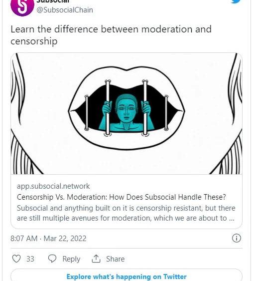 根據Kulechov的觀點,審核為每個人創造了選擇。LensProtocol有一個共享的社交圖譜,所有用戶信息都是主動連接起來的,且與傳統的社交媒體不同,這個社交圖譜是去中心化的。Kulechov認為,實現社交圖譜的去中心化,從而讓每個人都能訪問它,這提供了以更人道的方式來進行審核的機會。這種可訪問的互聯性為開發者提供了創建專注于內容審核的算法的機會。這本質上把該協議的前端(即應用程序)置于一個相互競爭的位置,以提供對準確、適當信息的可訪問性。Kulechov說道:“也許正確的內容審核方式應該是由社區主導的,其中社區的站點人員公布自己的身份,并進行審核或選擇算法。”Subsocial有三個審核層次:首先,每一篇文章都是在某個Space中創作。YB表示:“可以將Spaces想象成Reddit的子版塊、Facebook的群組、Twitter的個人資料或一個博客。每個Space至少有一個所有者可以審核其內容。此外,每個IPFS節點都至少由一個社區成員托管。這些節點運營者可以控制托管在他們服務器上的內容。最后,任何人都可以在該平臺上創建前端社交應用。連接到Subsocial區塊鏈的前端應用可以讀取鏈上的所有內容。節點運營者可以控制在該前端分發的內容。