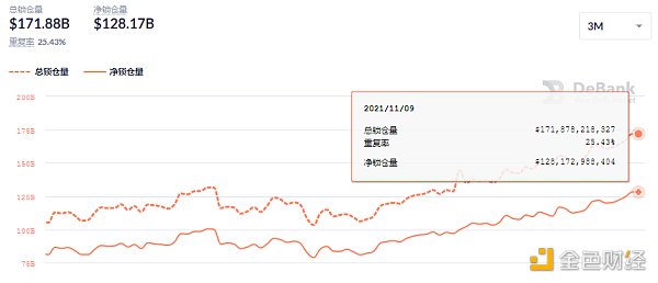 Ethereum鏈上DeFi鎖定資產前十排名及鎖倉量,數據來源:Debank