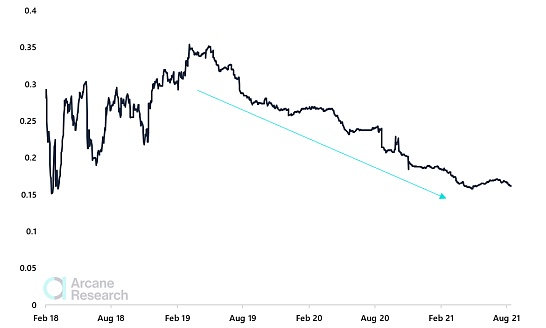 圖3 - 閃電網絡:2018-2021年公共BTC容量??