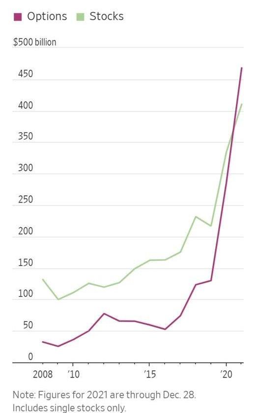 在股市中,每天都有近5000億美元的期權交易。整個2021年里,光BTC和ETH之間的期權交易額就達3870億美元。期權是加密領域的新興產業,隨著市場的成熟,該行業必將呈指數級增長。
