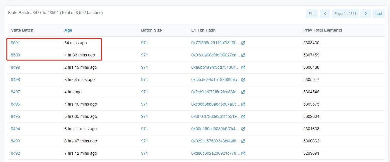 一般每隔幾分鐘,Sequencer就會向CTC傳輸一個交易Batch,其體驗就像在以太坊上構建由交易Batch構成的鏈表。之后,Sequencer又會將交易Batch對應的狀態根Batch存入SCC合約,該過程與上面提到的類似。