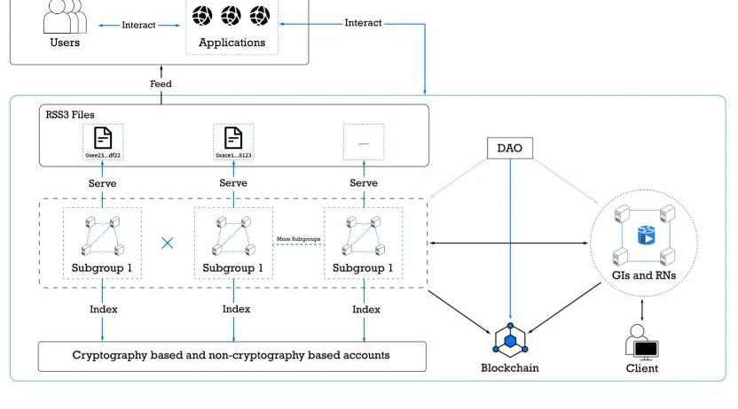 lRSS3是一個結合區塊鏈技術,衍生于RSS協議的下一代數據分發協議,具有靈活、高效、可擴展和去中心化等特點。lRSS協議是早期開發者為了方便追蹤網站更新和捕捉內容,而開發的開源、簡潔、免費的協議。lRSS協議無需訪問源站即可獲取信息的運用體驗嚴重影響了Web2互聯網巨頭的流量獲取;RSS協議推送內容不顯示源站廣告的特點極大的打擊了Web2互聯網巨頭的廣告收入。因此,Web2互聯網巨頭拋開了RSS協議,構建了基于自身流量體系和商業模式的封閉社交關系網絡。大多數Web1底層去中心化協議形成共識的難度比中心化封閉產品高,在沒有共識和激勵機制的情況下,難以構建生態和產品。區塊鏈技術出現之后,以RSS為例的一批互聯網底層去中心化協議將有望構建經濟模型和商業模式。隨著Web2時代頻繁出現的數據泄露、隱私安全、輿論操控、算法濫用、利潤榨取和數據壟斷等問題越來越引發關注。我們開始懷念像RSS協議那樣純粹的、簡潔的、免費的和開放的Web1互聯網底層協議,這是互聯網的“初心”。RSS3正是基于這樣的背景和愿景誕生的。去中心化信息流大致可以被分為創造、存儲、分發和展示四層,RSS3將專注于信息的去中心化分發,并提供相應的存儲解決方案和展示模塊。lRSS3協議允許用戶基于以太坊地址生成RSS3文件,并將自己的Twitter、即刻等社交平臺關聯進該文件。文件會實時同步用戶在其他平臺上的資產和行為,并將這些信息儲存在RSS3去中心化網絡中,最終實現用戶數據歸屬于用戶,并被中心化平臺“綁架”。lRSS3生態應用開發者,可以在用戶允許的情況下,根據應用特性篩選展示不同的信息,可以通過不同的API接口調取我在不同平臺上發布的內容。最終基于RSS3構建去中心化的Instagram、去中心化的Twitter和去中心化的微信等應用產品。lRSS3擁有獨立的區塊鏈系統,網絡主要由服務節點組和全局索引器組成。其中,服務節點組由若干個服務節點組成,主要負責RSS3網絡的日常運行工作;全局索引器由若干個中繼節點組成,主要負責RSS3網絡的安全、治理和性能管理。lRSS3生態應用和RSS3網絡將為我們提供一個自由的去中心化的數據創造、存儲和分發環境。從根本上解決Web2時代互聯網巨頭造成的數據泄露、隱私安全、輿論操控、算法濫用、利潤榨取和數據壟斷的問題。我們將一個沒有社交輿論操控、利潤榨取和數據壟斷的互聯網稱之為Web3.0;將一個不忘互聯網初心,順應用戶需求的信息社會稱之為Web3.0時代。RSS3是實現Web3.0的重要拼圖,是一個幫助我們步入Web3.0時代必不可少的基礎工具及協議。一、RSS協議,從繁榮走向衰敗