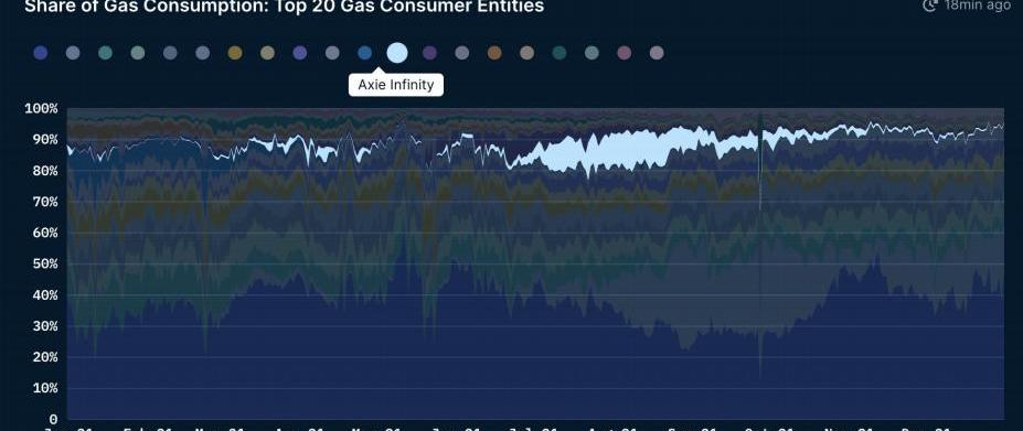 7-9月期間,區塊鏈游戲AxieInfinity成為以太坊上Gas消耗量最大的應用;后來它遷移到了自己的側鏈Ronin上。