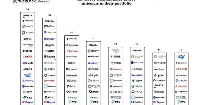 上圖:區塊鏈行業獨角獸指數2021年,近50家加密初創公司的融資金額超過了1億美元。從以往來看,對加密貨幣的估值以及區塊鏈的融資一直是由交易所、金融科技公司和機構服務平臺主導的。今年依舊如此,FTX、Celsius、Gemini和Fireblocks仍是最重要的主導機構。