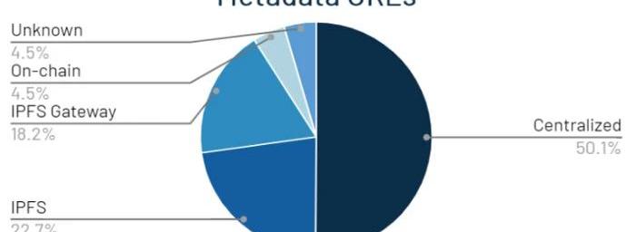 數據來源:https://arweave.news/arweave-annual-2021/根據ArweaveApps的數據,目前已經被收錄的Arweave應用數量達到了400+。強勁業務增速的來源Arweave業務數據今年快速上升的原因有內在的,如基礎工具和技術的推進,前面提到的數據合成打包技術Bundles的推出就是其中之一,基礎工具的逐漸完善,讓Arweave更順暢地承接了來自需求端的業務流量。具體來說,今年驅動Arweave業務數據快速上升的主要需求因素,可能來自于3個方面:●NFT市場大爆炸●公鏈百花齊放●Web3應用,尤其是創作者經濟的繁榮先說NFT:NFT市場從2021年開始大爆炸。先是數字藝術家Beeple的傳奇之作“每一天:前5000天”在2021年3月拍出超過6900萬美金的天價,位列在世藝術家的作品拍賣價第三位。然后是頭像類NFTCryptoPunks、BAYC的火熱和傳統體育IPNBATOPSHOTS的時興,再到鏈游類NFT的初露鋒芒。到2021年底,以周杰倫、陳冠希為代表的明星IP項目進一步擴大了NFT市場的熱度和受眾范圍。與高漲的市場景氣度對應的,是節節攀升的NFT價格,然而不少昂貴的NFT的源文件卻沒有存儲在鏈上,眾多NFT的智能合約將實際內容存儲在一個簡單的TokenURL中,該URL指向數字對象實際所在的一個Web2Internet地址,只要這些網站愿意,隨時可以用中心化手段把這些NFT源文件下線。根據TwitterKOLpencilflip在2021年10月對前22個NFT項目的一次調查,50%的項目將他們的文件存儲在集中式服務器上。