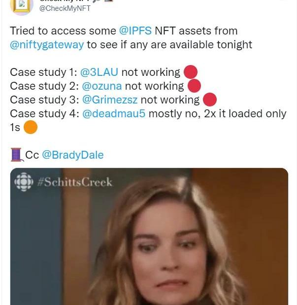數據來源:pencilflip的twitter,制圖:AmberGroup實際上,即使是另一個去中心化儲存項目IPFS也不能保證NFT的永久性。CheckMyNFT發現了一些來自藍籌藝術家的資產,包括Grimes、Deadmau5和SteveAoki,盡管它們托管在IPFS上,但仍被暫時下線了。