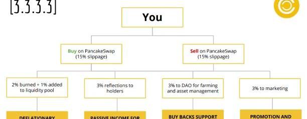 3%用于回購代幣,其中2%用于銷毀,1%用于補充流動性池;3%自動獎勵給代幣持有者;3%捐贈給DAO,用于Farming或者投資,其中Farming收益用來回購代幣,投資收益以BNB的形式獎勵給代幣持有者;3%流入協議的marketing錢包,用來建立Launchpad。EmpireCapitalToken($ECC):近半個月漲幅約為744%,持幣地址數為2493,Twitter粉絲數為1.8k,已經通過Certik審計。該DeFi3.0協議的Farming策略與Multi-ChainCapital類似,在此不再贅述。該協議對每筆交易收取10%的手續費,具體用途如下: