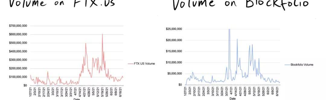 除了主站,我們也可以分別看一下美國市場FTX.us和被FTX收購的Blockfolio交易量。