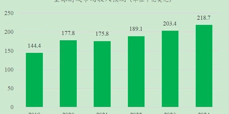 游戲市場將迅速自2021年的略微下調中復蘇。全球游戲市場將以8.7%(2019年-2024年)的復合年增長率攀升,在2023年突破2000億美元大關,并在2024年達到2187億美元的總收入。