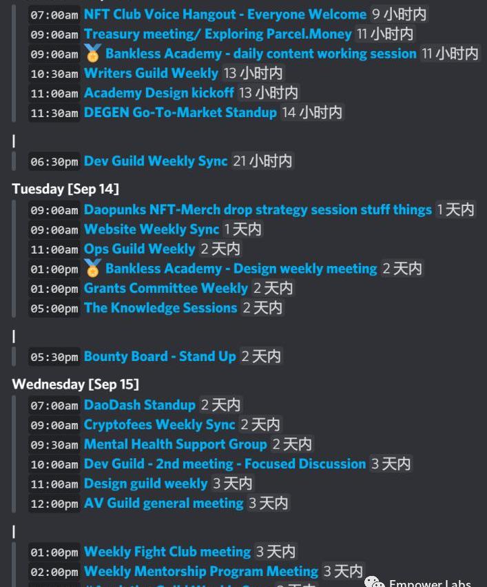 會議就在discord的工會語音頻道里進行,這次一共六個人參加,討論了一些DAO之間的合作架構之類虛的問題,也沒有達成什么很具體的行動項。有位哥們是搞Salesforce的,說可以幫忙建個乞丐版的免費CRM系統給大家用。好啊好啊,咱們做事水平不管咋樣,裝備先跟上。會議超時10分鐘,結束已經是1點40。明早七點半還有個DAO的會,不行了,長此以往身體要被掏空,暗暗想明天一定十一點前睡覺緩緩。早上起床吃飯把娃伺候好,7點半準時進入另外一個會,討論一個discord機器人項目。第一次參加,里面的人我絕大部分都第一次見。我是前兩天被另外一哥們叫過來的,說他們要搞SaaS服務,項目很好玩,這次討論商業模式。你不是之前搞過IT企業服務,你去給提點建議。好吧,雖然這個項目干啥的我也不知道,但企業服務相關的東西我還是有興趣聽聽,也看看他們到底如何組織一個開發項目的。進去先聲明“兄弟們我八點要送娃上學,我來打醬油聽半小時,你們聊哈。”雖然打醬油,但事先我還是做了功課,昨兒已經去notion里看了他們之前的幾次會議紀要。嗯,這是一幫程序員,會議紀要全是技術討論,我沒看懂。好在一開始這半小時也沒聊具體技術,大家先討論了是否開源,不開源吧,好像有點跟加密社區的文化不符,開源吧,誰都能拿去用,這商業模式還咋設計,兄弟們還能不能掙點錢了。一哥們說要不弄成捐贈模式算了,另一哥們說,不中,捐贈模式是最不靠譜的商業模式。又有人說要不做成redhat模式,軟件全免費,通過企業級服務掙錢。我忍不住插一嘴,大哥,你是DAO,都是一堆人兼職來玩,誰去搞服務。你們聊,我出門了。送完娃到辦公室,先處理自己的日常工作事務。11點上discord看了一眼,咦,NFT頻道有個哥們在直播帶著大家逛opensea。進去聽了下,里面有他判斷NFT價值的邏輯和玩opensea的技巧,奇怪的知識又增加了。不過你們玩,都是圖,我窮,我不買。這個頻道目前都是大家相互交流NFT,是個純閑聊頻道,沒啥具體事做。不過昨天記得看日程的時候發現有一個叫“NFTzAlphaChat”的會,這大概是又有人有想法了把。從NFT頻道出來發現有人@我。是早上機器人會議的組織人,問我聽完有啥想法沒。我說我就聽了半小時,也沒弄明白你們這個機器人到底都要干啥。你看你們這點人都是業余時間來弄,大家憑興趣開發個東西還行,組織后期服務沒戲。如果你們想賣這玩意,我覺得可以這么搞,如此如此,這般這般,好了,都是個人想法隨便說說哈,其實我也不懂,說錯了你就當看笑話了。中午和下午,各頻道都比較沉寂,大部分成員在歐美時區,這個時間都是休息時間。挺好,不影響我白天處理工作。下午抽空把DAO里某個項目最近幾天的討論看了一遍。這是我個人非常關注的一個新項目,由于這個項目大概率會通過注冊商業實體去運作,法律工會曾事先給出過大量合規建議,其中一個建議是不能在公共領域提這個項目,否則會有問題,這也是少量沒有公開細節的項目。晚上把娃哄睡10點多了,上電腦上看了一眼日程,今晚有這個項目周會,這次要討論的事還蠻重要,但時間在夜里三點。這個時間就不用抵抗了,說啥也參加不了,明天看會議紀要把,睡了睡了。臨睡前手賤跑去Metaverse頻道看了眼,咦,有人說有個新的Metaverse項目,開放給各類DAO申請島,免費的,咱們去里面建個島玩呀?這個好玩,關注,順便又去看了看提到的項目。一天終于結束了。最后我想總結下,但想不出詞,生活大概不需要總結。本文來自Defi之道,星球日報經授權轉載。
