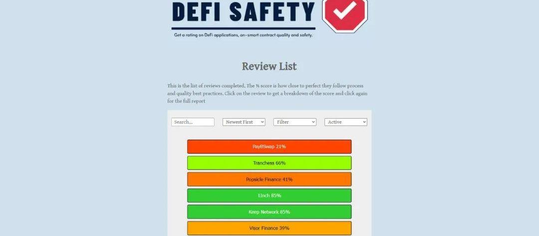 檢查代碼的審計示例依賴信譽較差的審計師可能會對用戶資金造成重大風險,因為他們可能會降低審計質量,或者可能沒有審計復雜智能合約的重要經驗。一些項目可能會雇傭多個審計員來審計智能合約代碼,以確定協議的信任度。使用像DeFiSafety這樣的第三方審計平臺也可以幫助減輕對代碼質量、團隊、測試過程、安全程序和訪問控制等多個因素的擔憂。