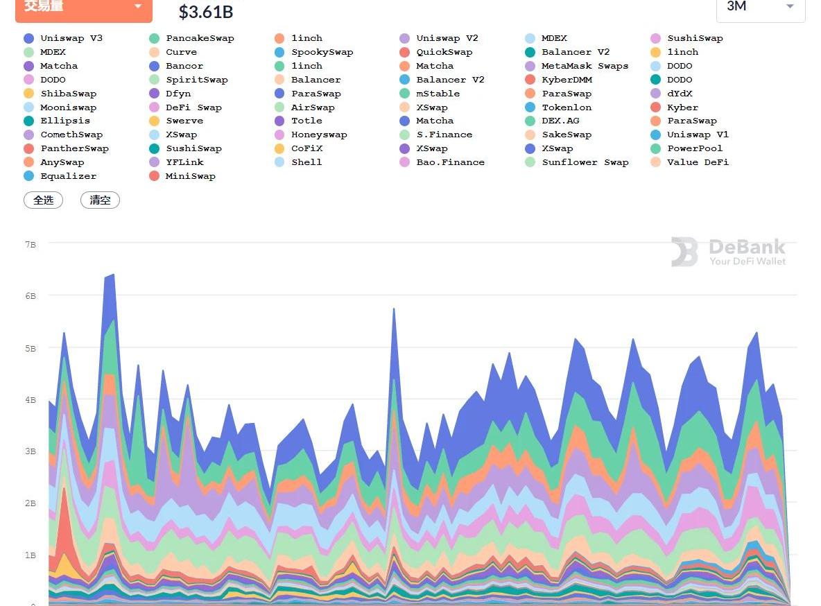 來源:Debank去中心化交易所成交量并未受到行情端太大影響,可能表明DEX的受用范圍及規模在逐漸增加,伴隨著行情端的好轉,未來可能會出現一定爆發。借貸整體情況