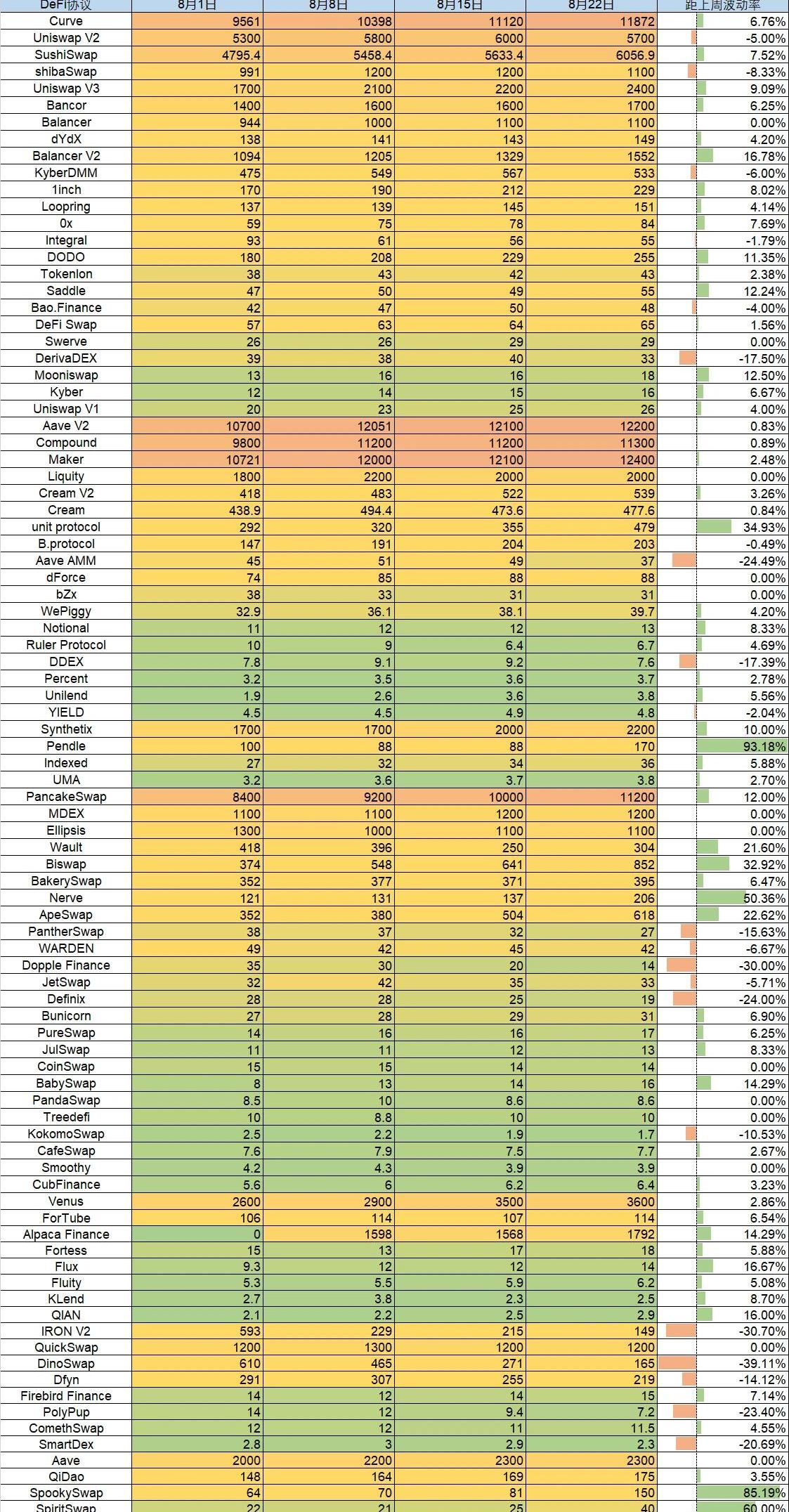 來源:Debank統計日期:2021.8.23各協議總鎖倉量情況