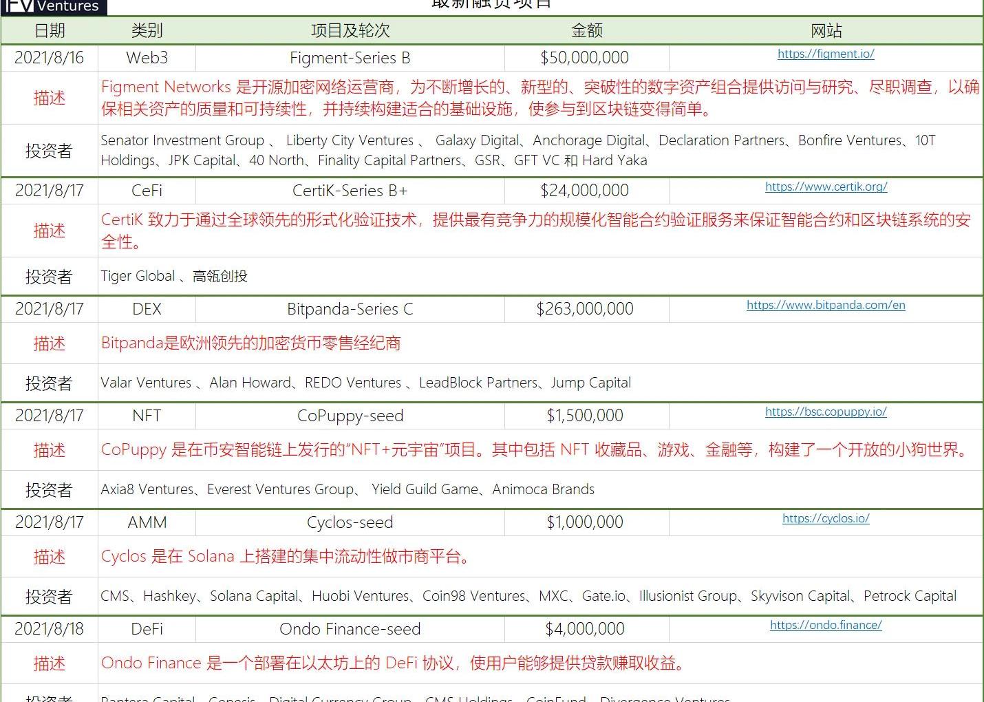 來源:Debank統計日期:2021.8.23近期TVL增量情況較好協議