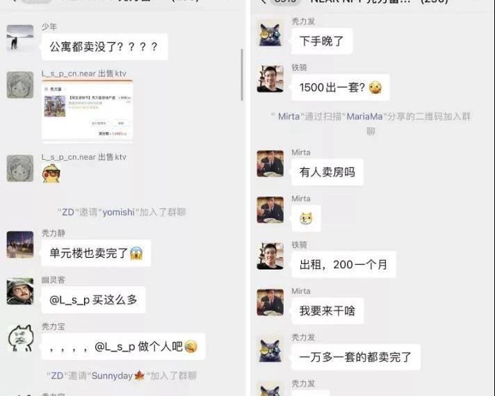 和大部分地產項目一樣,不禿花園的房產外觀設計好了、產權也用區塊鏈技術保護好了,這些NFT資產也已經從創作者手里真正的轉移到了“業主”手中。此后,房產如何使用、小區如何管理、要不要重新裝修等等,都是“業主”們自己說了算了。這不,業主們已經在微信上建好了業主群,在元宇宙的這個虛擬小區也有了自己的一個社區,業主們已經在群里忙著暢想著未來的元宇宙虛擬人生了……