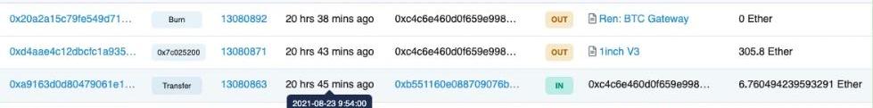 截止8月24日零點,共計8900Ether已經進入Tornado.Cash。根據艾貝安全人員分析,目前有一部分資金已經被從Tornado.Cash取出,并且通過RenBTC跨鏈兌換成99個BTC。