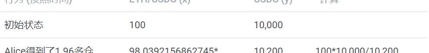 隨后,Bob繼續注入100U并以2倍杠桿開多,通過上述同樣的方法計算,其實際持有的多單為98.03-96.15=1.89;