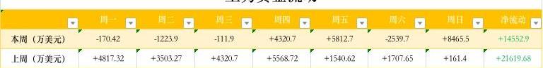 日線圖上顯示,價格站上布林帶中軌,支撐位為120日均線以及布林帶中軌2413美元;短期內回調至3000美元一線;如果站穩3000美元,則可能再次沖擊3500美元。2.資金流動