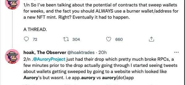 事后,Jeff在推文上寫道:“他們(騙子)把所有資產都轉走了,包括我所有的Apes(無聊猿NFT)、狗幣、加密貓和空投幣,以及所有的ETH。”雖然這種攻擊在MetaMask上已經不再有效,但關鍵是要意識到,Discord上存在一些所謂的「支持賬戶」,它們會使用任何可能的伎倆來盜走你的資金!2)利用人們在鑄造NFT時的疑惑