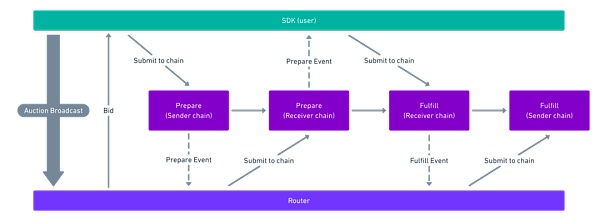 這個過程似乎比 Celer 復雜。這里涉及到兩個角色,一個是“router”,其作用與 celer 的“relay node”相同,另一個是“relayer”,對跨鏈信息進行內部驗證。