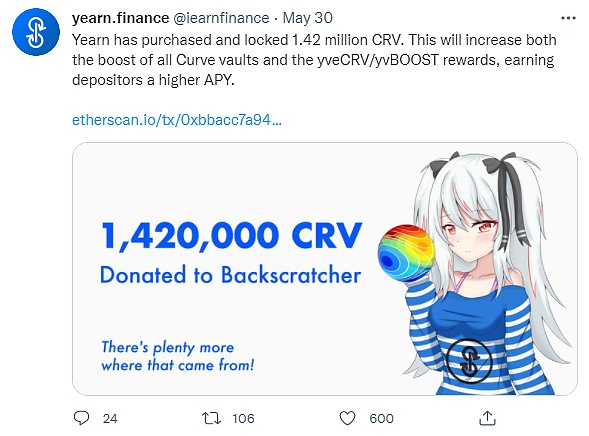 充分引入平臺各參與方(流動性提供者、資產和票據的發行方)的博弈,形成對治理權(veCRV)的持續競逐,進一步提高了對CRV的需求,承接了持續解鎖的CRV賣壓