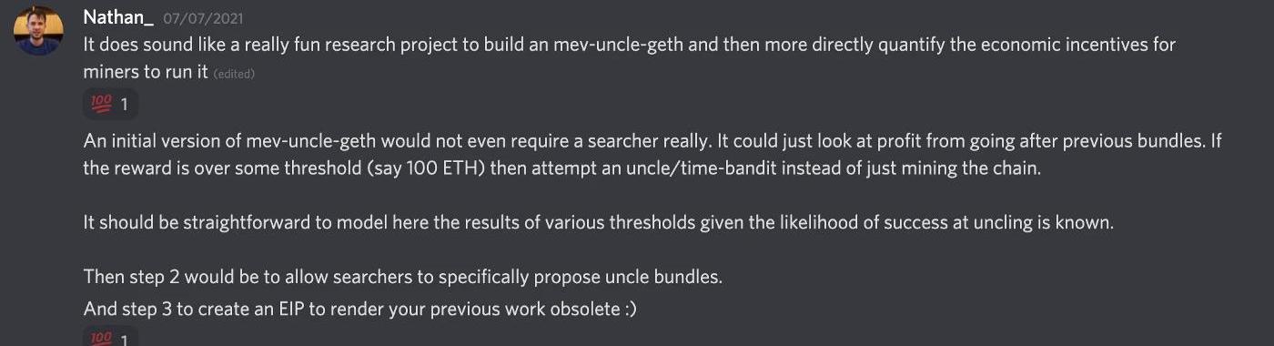 受歡迎的Twitter用戶MEVIntern對引入此類沒有工具來防御它的軟件表示擔憂;畢竟,雖然這種激勵重組在技術上是在共識范圍內被允許的,但它們也確實破壞了協議的穩定性,并且可能通過創建圍繞礦工行為的安全假設受到挑戰的場景對以太坊進行了過多的壓力測試。