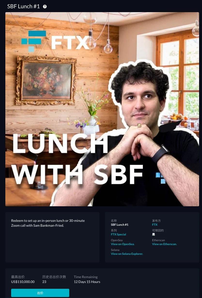 6月3日,加密交易平臺FTX官方宣布推出NFT交易平臺,允許用戶買賣NFT作品或進行拍賣。NFT作品將保存在FTX的NFT藝廊,用戶也可提取NFT作品至錢包中。據官方說明,持有NFT可兌換部分商品和服務,詳情請參照NFT說明。此外,FTX提供NFT展示服務,用戶可聯系官方申請將收藏品在NFT藝廊進行展示。需要注意的是,NFT作品一經購買無法退款,且美國用戶無法在FTX交易,但可在FTXUS上查看NFT。此外,「SBFLunch#1」NFT正式上線NFT交易市場并啟動拍賣,成功拍得此NFT的藏家將有一次機會與SBF共進午餐。截至目前,該NFT最高出價11萬美元。