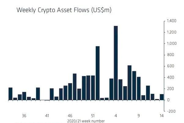 1、調查顯示:20%的用戶認為今年比特幣的價格將超過10萬美元最近,Currency.com分享了他們的一項調查,結果顯示,大約有20%的Currency.com用戶相信比特幣今年的價格將超過10萬美元。另外,53.8%的用戶認為,在一年的時間里,比特幣的價格將在5萬至10萬美元之間,而17.3%的受訪者認為,比特幣的價格將跌至2萬5至5萬美元。對于比特幣的估值是否與其真實價值一致,意見上也存在明顯差異。當前有近一半的用戶認為比特幣的價格與其實際價值相匹配。而有35.6%的用戶認為比特幣被高估了,還有19.5%的用戶認為比特幣被低估了。目前比特幣61000美金,到10萬美金再漲64%。2、報告:比特幣長期持有者出售BTC的意愿較小4月15日,Coindesk發文稱,在過去的一年中,比特幣上漲了近兩倍,這使仍處于積累階段的長期持有者得到了回報。這表明,在比特幣突破歷史高點63000美元之后,看漲活動才剛剛開始。根據Glassnode的最新報告,相對于先前的牛市,比特幣長期持有者的出售意愿較小。此外,根據Glassnode圖表,比特幣長期持有者已經開始再次積累比特幣。此前數據表明,自2020年10月以來,比特幣長期持有者和礦工一直在出售比特幣。3、花旗銀行:比特幣挖礦消耗電力相比2015年末增長66倍據花旗集團近期報告稱,比特幣采礦業所消耗的電力是2015年末的66倍,報告援引劍橋大學數據稱,截至4月中旬,比特幣網絡的全球電力需求可能達到了143兆瓦時的年發電量,比阿根廷2019年的總發電量高約4%。花旗集團分析師在報告中說:隨著比特幣的價值上升,能源消耗也對應上升。考慮到其對氣候的影響,比特幣采礦業的擴張可能面臨越來越多的法規。比特幣挖礦=耗電=氣候影響,如果這個邏輯成立,那么銀行系統龐雜的結算體系所消耗的電力與計算機設備,遠遠大于比特幣挖礦所消耗的能源,是否意味著我們需要用更加先進的比特幣,替換掉中心化、費用昂貴的銀行結算系統?4、報告:上周數字資產基金流入量下降至8300萬美元據CoinDesk消息,數字資產投資公司CoinShares的最新報告顯示,盡管最近的一輪獲利回吐似乎已經減弱,但上周數字資產投資產品的凈流入減少了約2300萬美元,至8300萬美元。CoinShares表示,比特幣以外的產品資金流入增加,以及以太坊的受歡迎程度“表明投資者已開始將注意力轉向替代性數字資產”。四月份第一周,數字加密基金1.06億美元,第二周流入8300萬美元,雖然有所下降,但與三月份最后一周的2000萬美金相比,本周流入量仍然十分可觀。