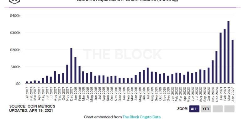 XRP/HKD-2.84%根據TheBlockResearch匯編的數據顯示,今年3月,經調整的比特幣月度鏈上交易量創下歷史新高。3月份經調整的鏈上交易額為3662.7億美元,比2月份3193億美元的歷史最高紀錄增長了14.7%。同月,比特幣礦工帶來了超過15億美元的收入。