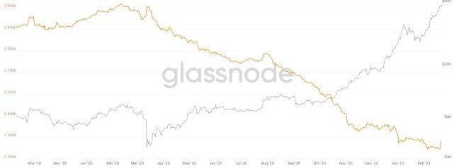 提幣客戶越來越多,交易所存量比特幣越來越少研究顯示,交易所中存放的比特幣數量在過去一年從300萬枚減少到了220萬枚,減少了80萬枚。在交易所存放的比特幣,還在持續減少。如果交易所的比特幣持續減少,購買比特幣的難度還會上升。而在場外,還有更大的一批大鱷在吃進比特幣。2021年2月,特斯拉宣布已經買入了價值15億美元的比特幣,并且宣布可以用比特幣購買特斯拉汽車。比特幣價瞬間大漲10%。馬斯克還宣布,客戶將可以用比特幣購買特斯拉汽車,特斯拉不會出售這些比特幣。特斯拉并不是全球第一個吃螃蟹的科技公司,2020年,Square投資約5000萬美元購買了4709枚BTC。Square的嘗試,讓比特幣第一次出現在了美國上市的資產負債表中,并被會計準則認可。另一個最直接的例子是微策略,他們在2020年8月起通過自持現金、發行可轉債募資等形式持續購入比特幣超7萬枚,成本超11億美元。中國的美圖公司,也已經購買了1億美元的比特幣和以太坊,是中國少數公開持有比特幣的公司。有限量的比特幣和越來越多的需求,正構成越來越嚴重的供需矛盾。